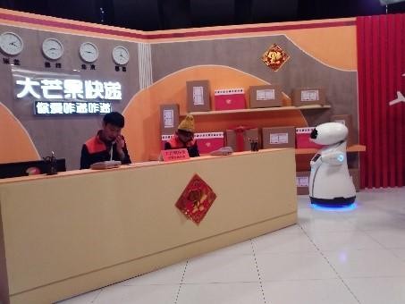 2016年1月19日“哇欧”机器人凭借先进的人脸识别、声源定位、灵活自主路径等技术,转身化身“快递员”出现在湖南卫视春晚彩排现场。